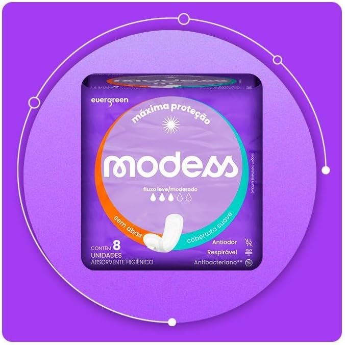 Modess é aquela marca que, devido à popularidade, se transformou em sinônimo de absorvente — e o Ever Green Abs Modess Máxima Proteção Suave mantém essa tradição de confiança e eficiência. Indicado para quem enfrenta fluxos intensos e busca conforto sem abrir mão da segurança, é uma ótima escolha para o dia ou para a noite, garantindo tranquilidade em qualquer rotina.