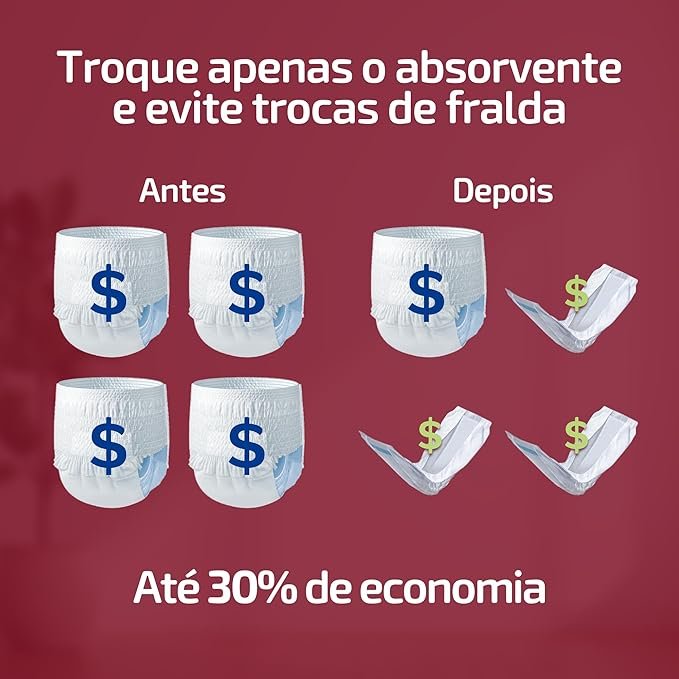 | Extras | Cobertura seca, controle de odores, abas anatômicas |