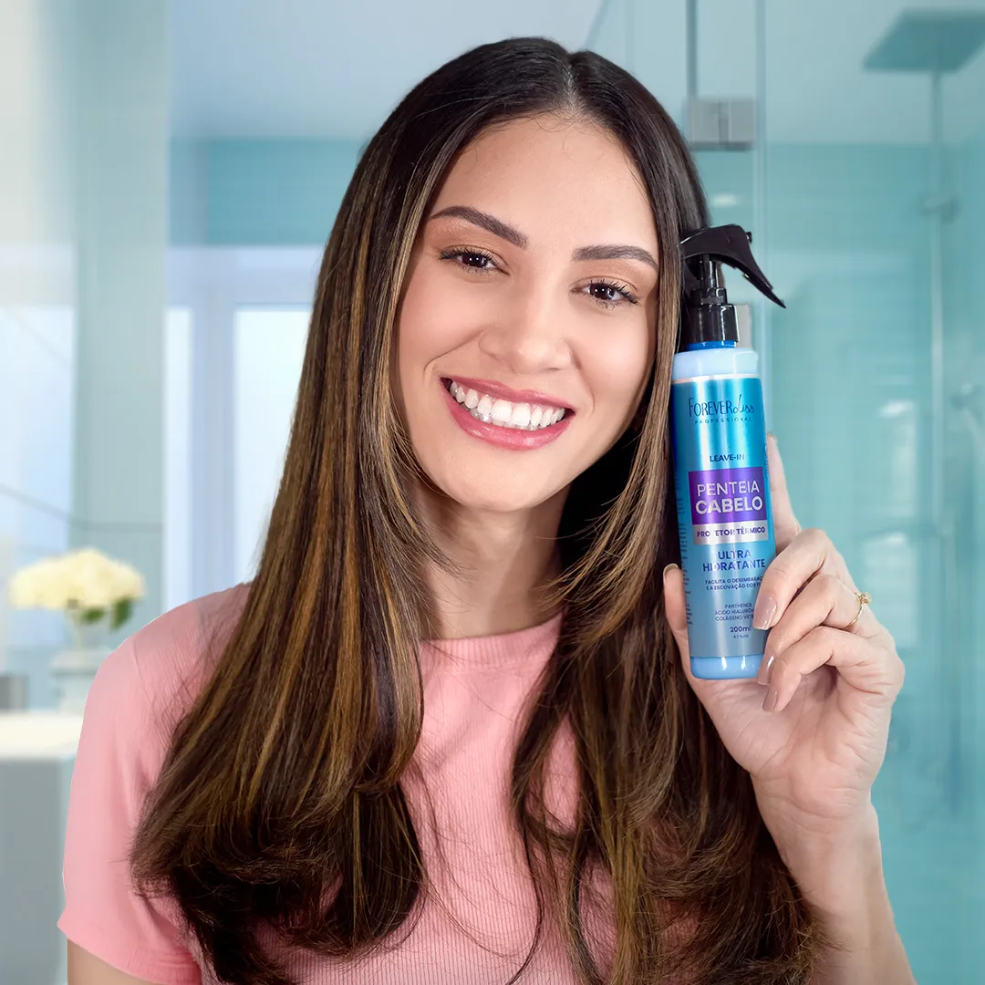 Nosso próximo nome na lista do melhor creme de pentear para cabelo liso é o Leave-in Penteia Cabelo da Forever Liss, ideal para quem busca praticidade e hidratação diária sem pesar nos fios. Ele funciona muito bem para pessoas que têm a rotina corrida e querem desembaraço rápido, maciez imediata e facilidade na finalização em cabelos úmidos.
