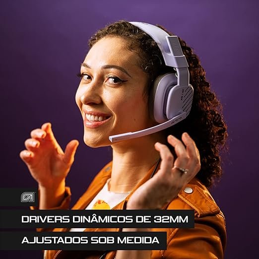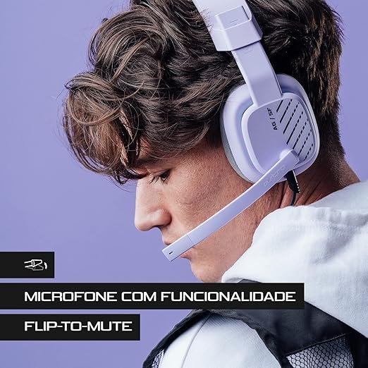 Outra alternativa para quem busca o melhor fone de ouvido com fio é o ASTRO A10 Gaming Gen 2, indicado para gamers que desejam mergulhar em partidas longas com máximo conforto e comunicação eficiente. Seu design circumaural lilás traz estilo ao setup e garante isolamento sonoro, além de um microfone flip-to-mute prático para interações rápidas.