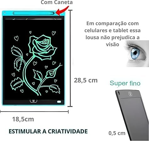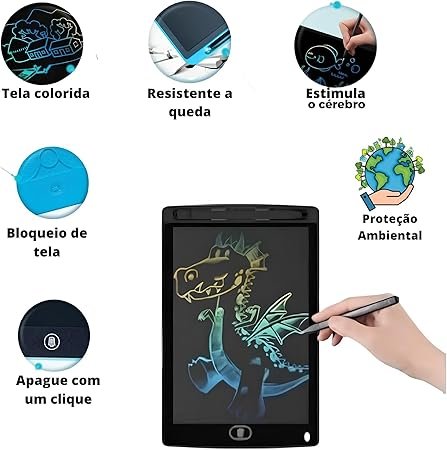 Seu grande trunfo está na simplicidade: tela LCD sensível à pressão, uso sem tinta, botão único para apagar e consumo mínimo de energia. Leve, resistente e reutilizável, ela incentiva o desenho, a escrita e o raciocínio lógico, além de ajudar a reduzir o uso de papel no dia a dia.