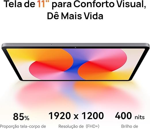 Entre os principais atrativos estão a tela Full HD+ de 11” com certificação TÜV para redução de luz azul, garantindo mais conforto aos olhos, além do corpo fino e leve que facilita o uso prolongado. Os 8 GB de RAM e 128 GB de armazenamento entregam boa fluidez, enquanto a superbateria de 7700 mAh sustenta horas de uso contínuo. O suporte à caneta stylus completa o pacote para quem busca praticidade e precisão básica no desenho digital.