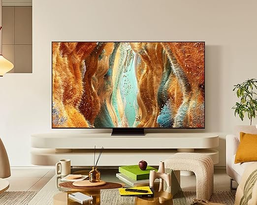 No desempenho, os Mini LEDs elevam brilho e contraste, enquanto o Modo AI ajusta tudo conforme seu estilo de uso. A conversão automática para HDR melhora até conteúdos simples, e o painel de até 144 Hz garante maior fluidez em filmes e jogos. Para completar, o modo karaokê e a assistência por voz deixam o uso mais divertido e integrado.