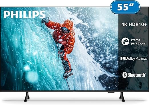 Se você quer uma opção para assistir jogos com máxima imersão, a Philips The Xtra QD-Mini LED 55″ 4K 120 Hz é uma escolha certeira. Indicada para quem busca cores vibrantes, pretos profundos e uma experiência realmente envolvente, ela combina imagem premium com recursos inteligentes para quem joga ou assiste esportes.