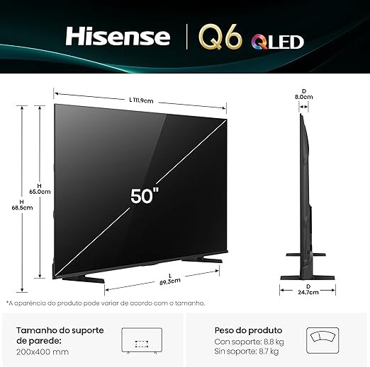 Hisense Smart TV UHD 4K QLED 50″ Polegadas 50Q6QV