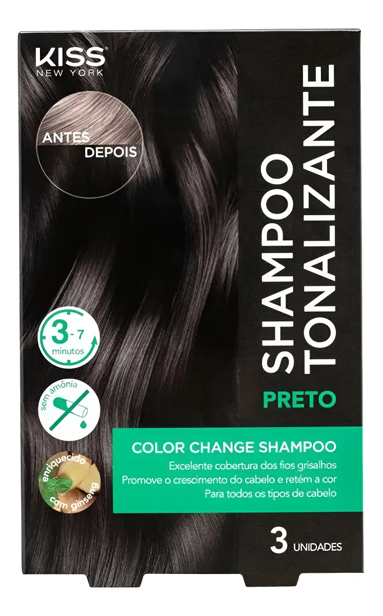 A Kiss é uma marca conhecida por unir praticidade e resultado, e o Color Change Shampoo Tonalizante Preto segue exatamente essa proposta. Ele é indicado para quem deseja um tom preto intenso sem complicações, sendo perfeito para usuários que buscam rapidez na aplicação e cobertura eficiente dos fios brancos.